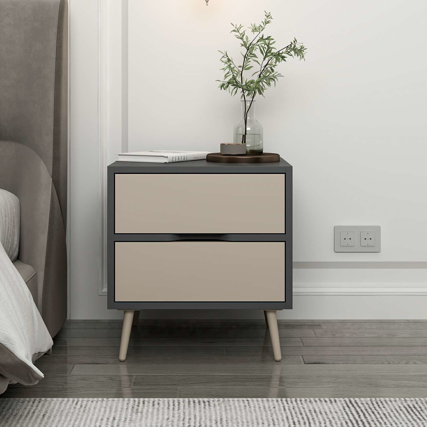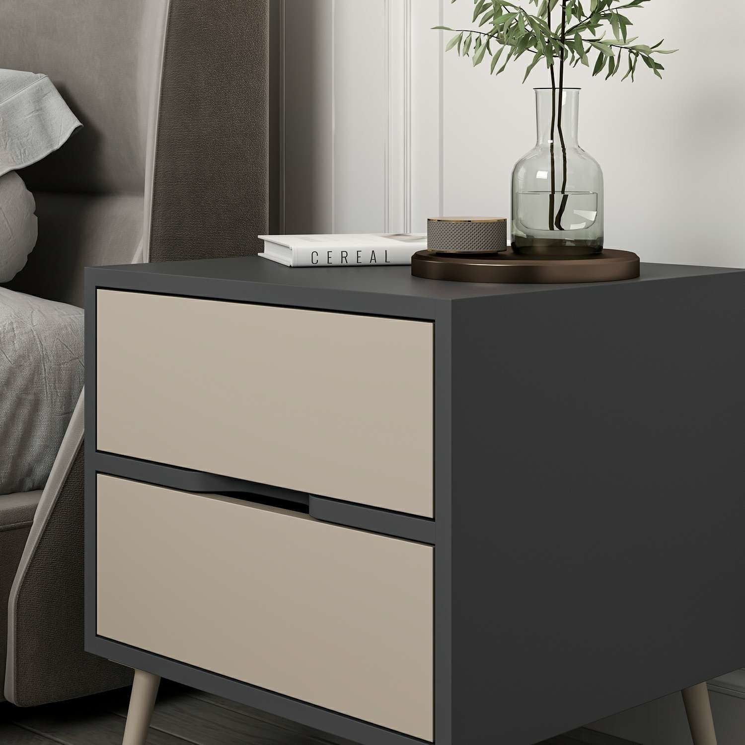 Elina Ayaklı 2 Çekmeceli Komodin - Antrasit/Kumtaşı
