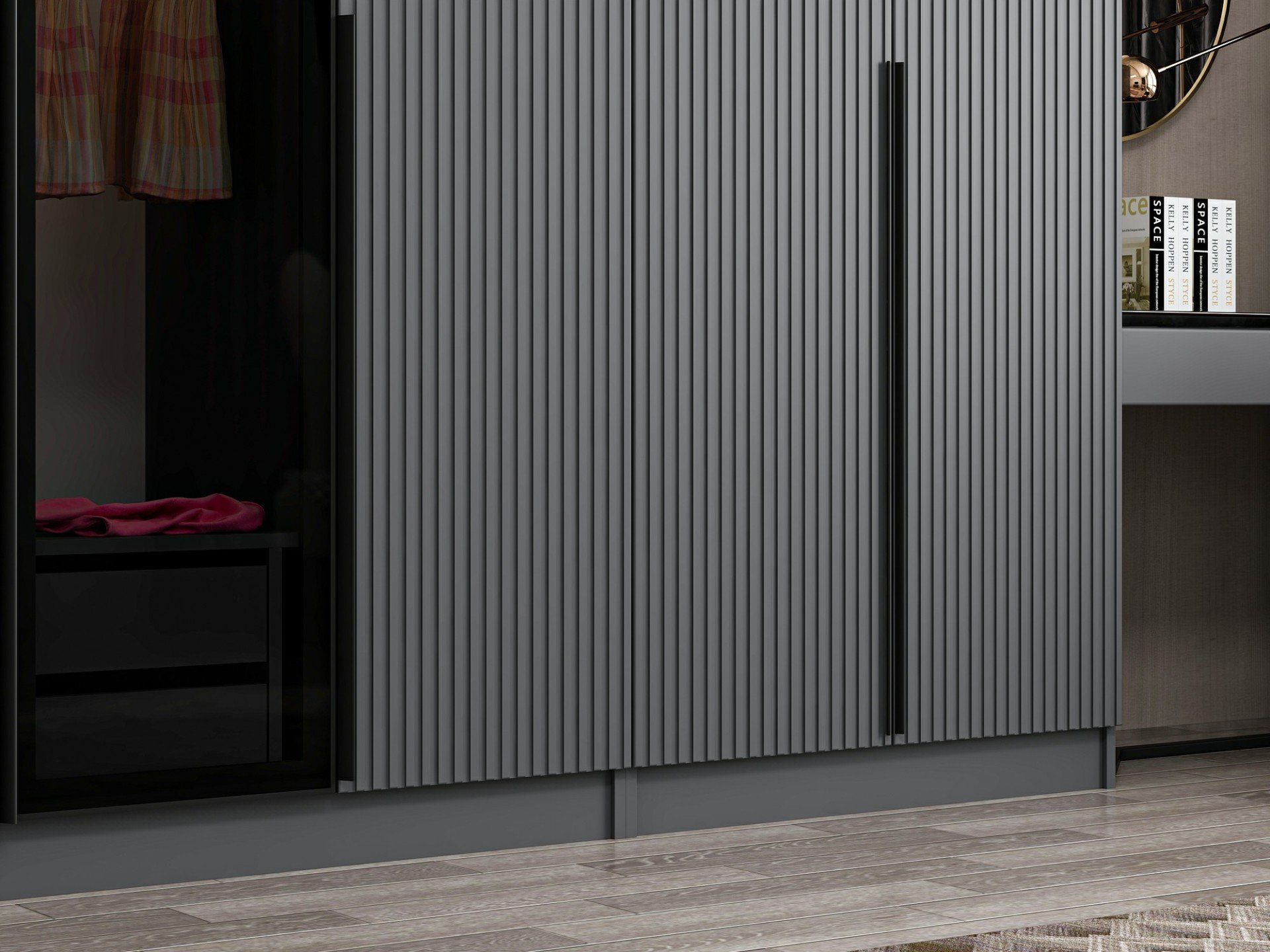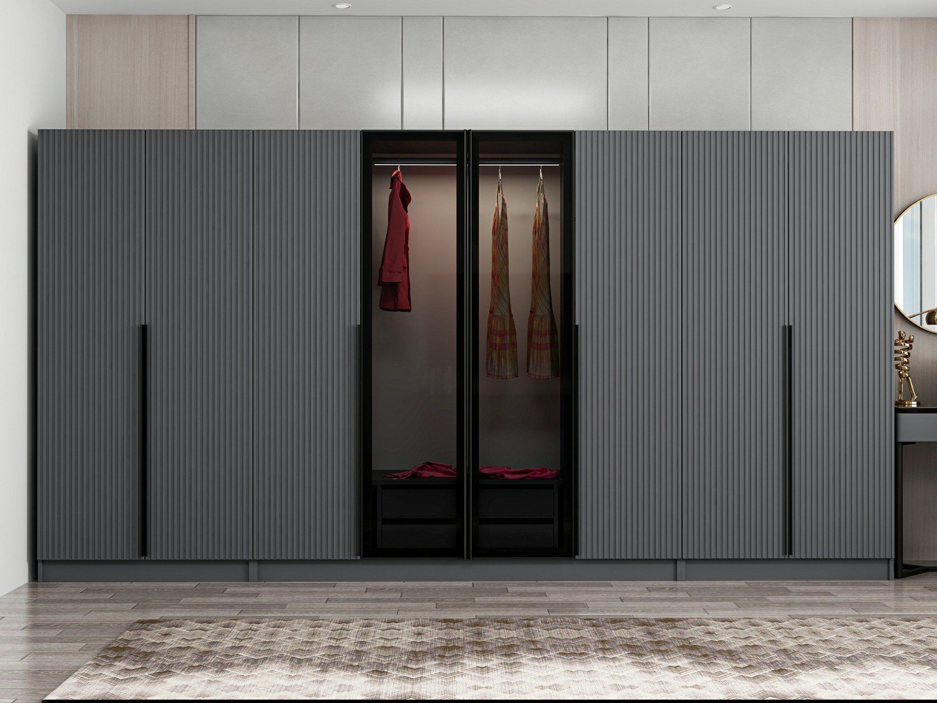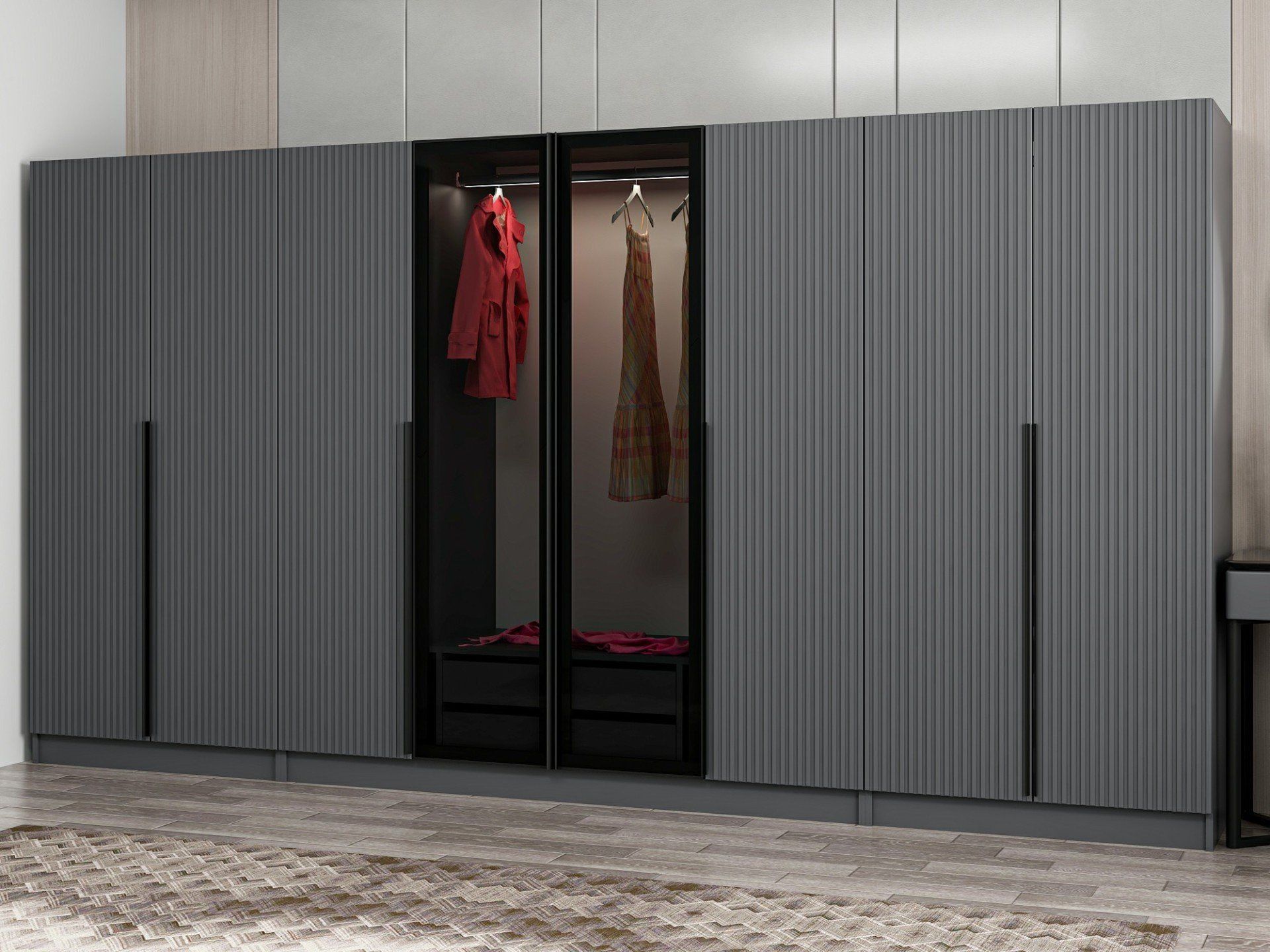 Kale Plus 8 Mebran Kapaklı 2Ç Dolap Antrasit Mebran Füme Cam