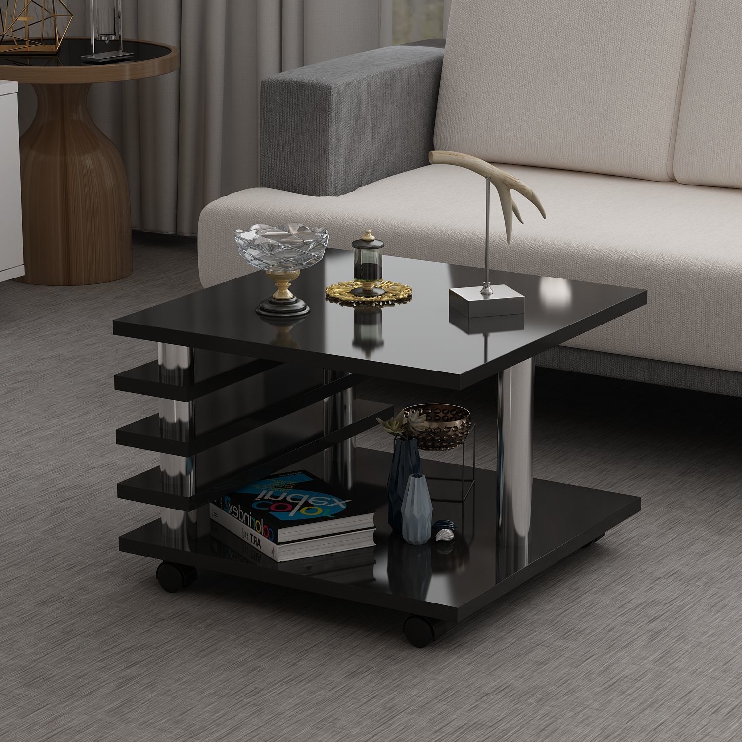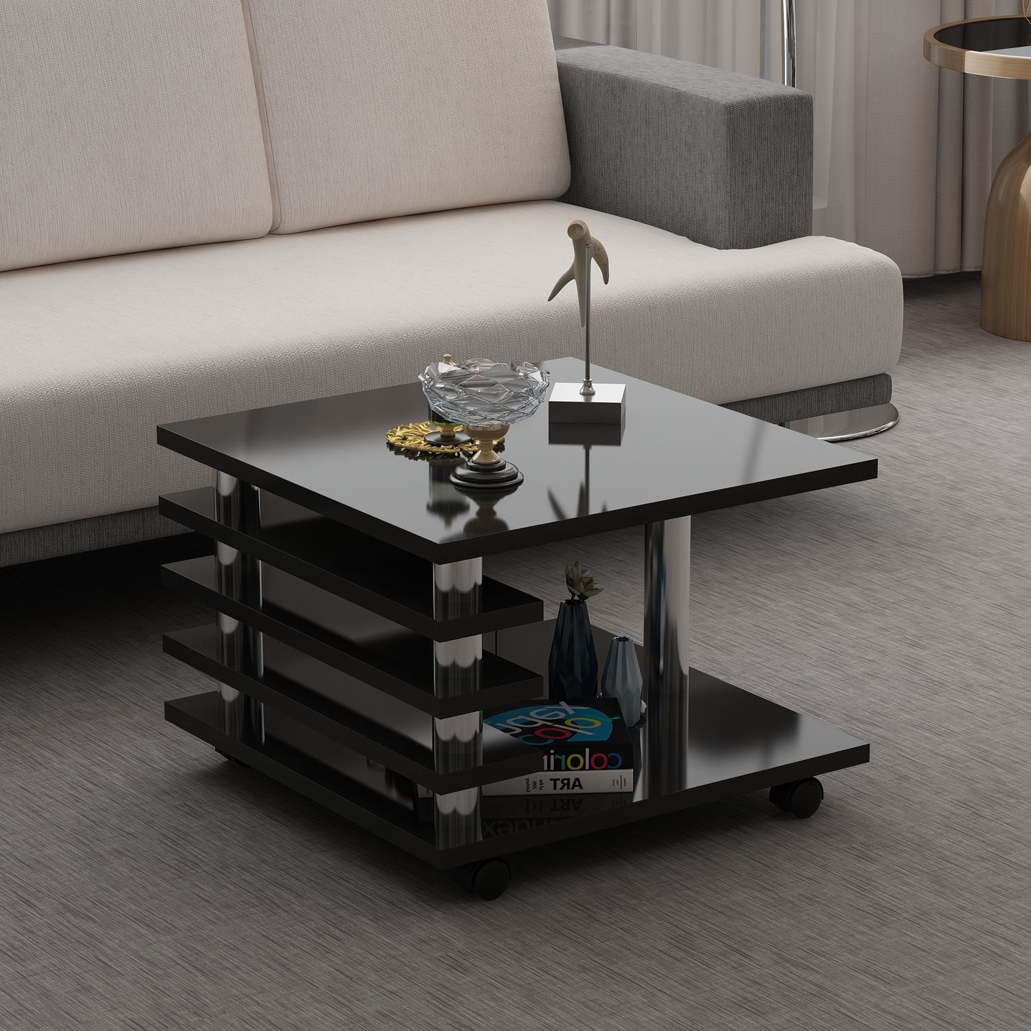 Melanie Orta Sehpa 65Cm - Parlak Siyah