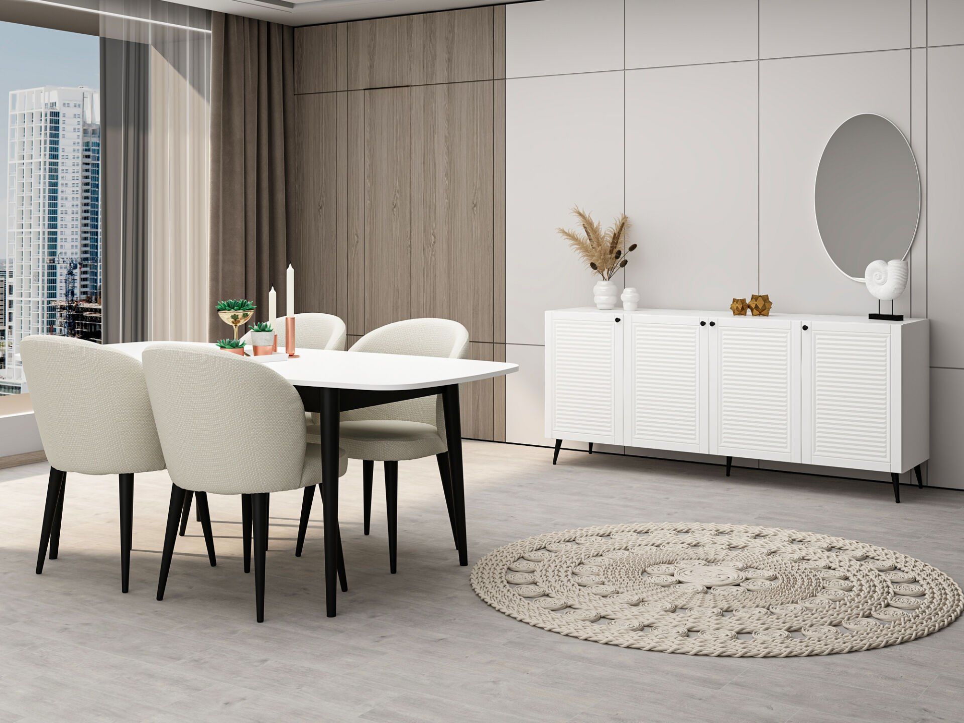 Saflığın ve zarafetin buluşma noktası: Pandora Düğün Paketi - Beyaz. Yatak odası, yemek odası ve oturma odasında kullanılan beyaz rengin ferahlatıcı etkisi, yaşam alanlarınıza hem aydınlık hem de huzurlu bir atmosfer kazandırıyor.