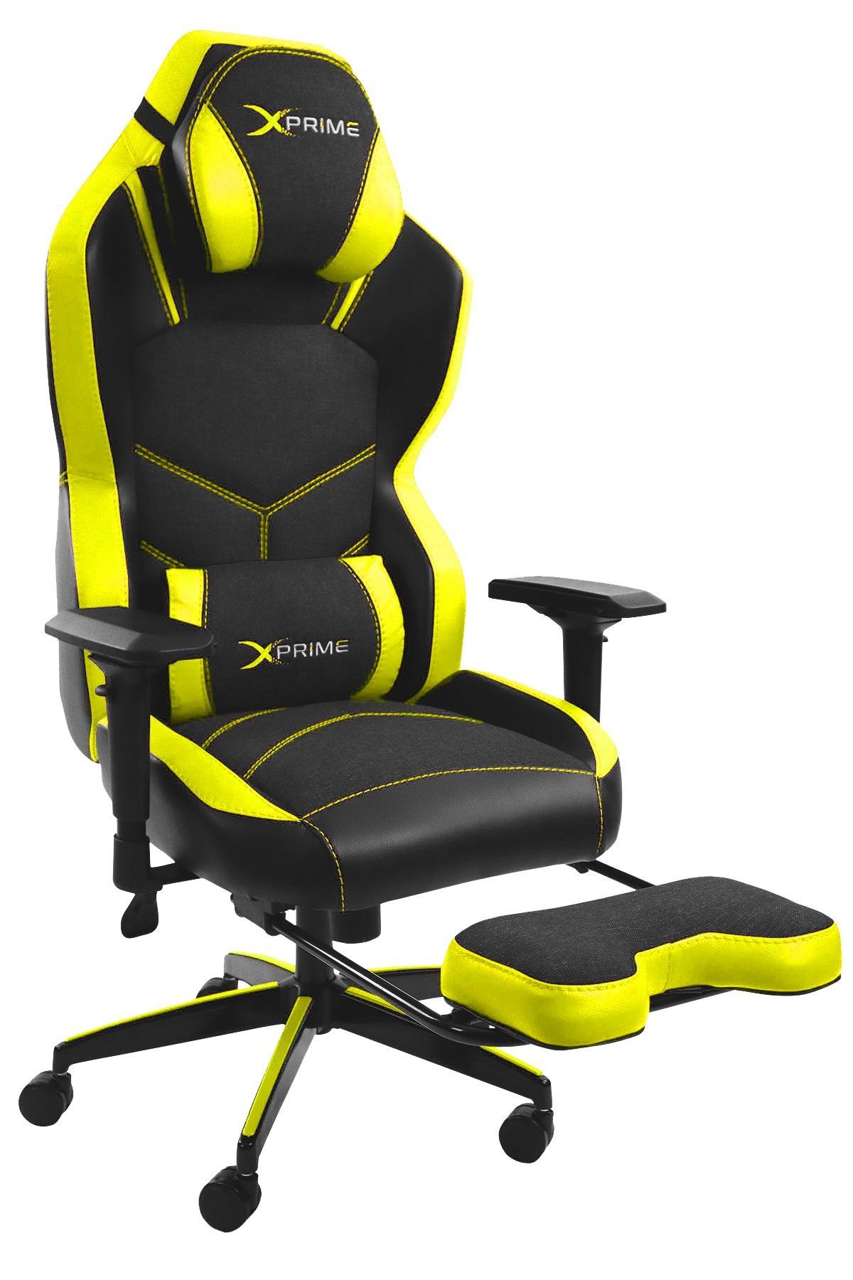 XPrime Tyler Oyuncu Koltuğu Hybrid Kumaş 4D Kolçak Ayak Uzatmalı Sarı