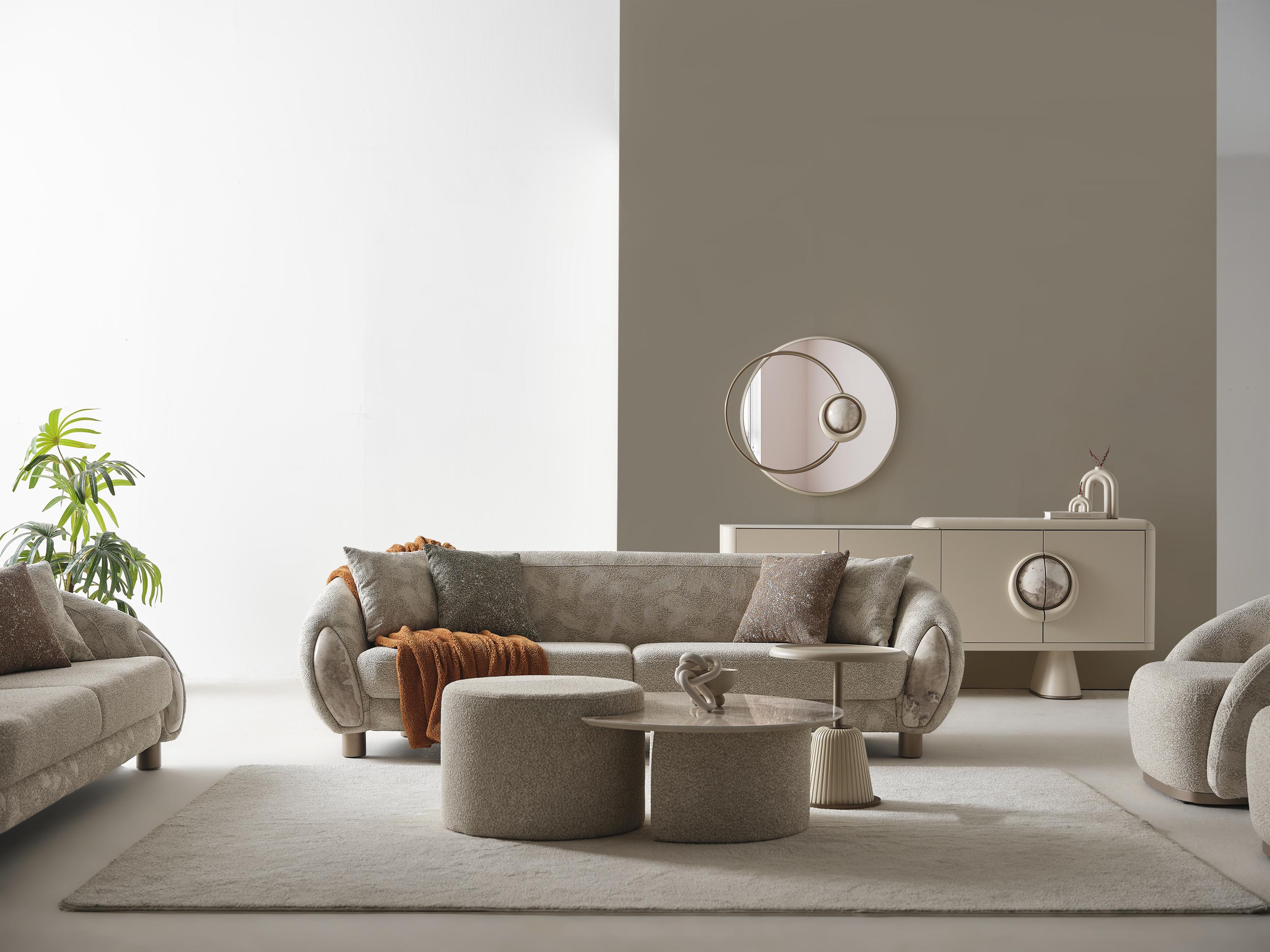 Zürih Koltuk Takımı, modern tasarımın zarafetle buluştuğu, sade lüks anlayışını yaşam alanlarınıza taşıyan özel bir koleksiyondur. Yumuşak geçişli hatları, doğal renk paleti ve dengeli formu ile bulunduğu ortama sofistike bir huzur kazandırır.